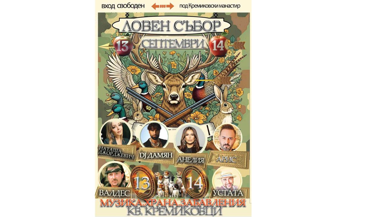 ЛРС-София-изток организира голям ловен събор. Събитието е с вход свободен и ще се проведе на 13 и 14 септември 2025 година в кв. Кремиковци /под Кремиковски манастир/.