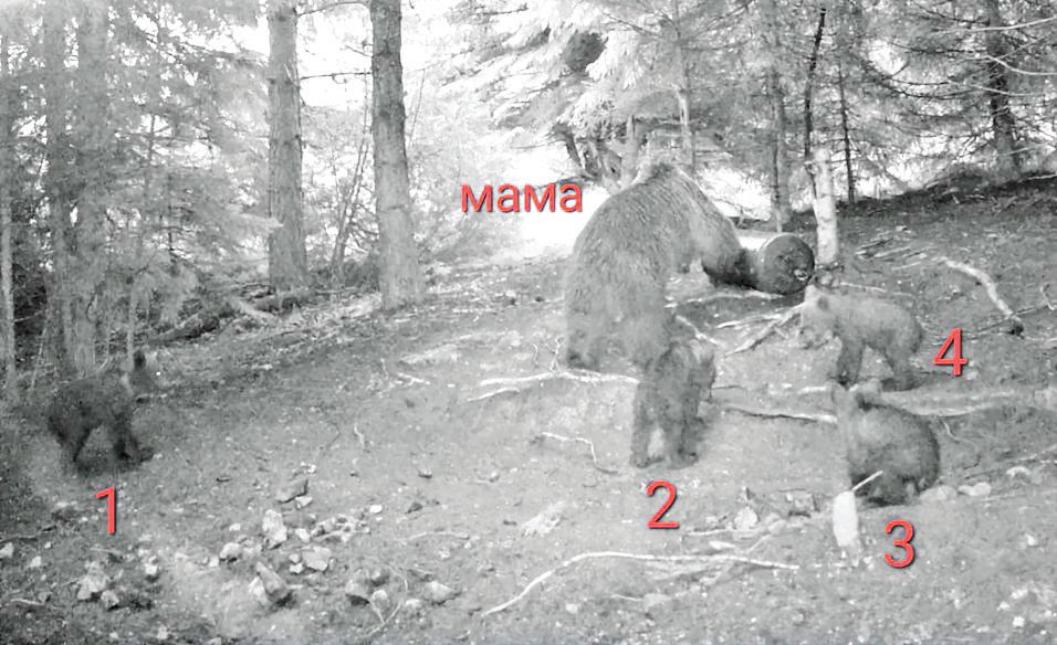 Кафява мечка е родила четири мечета в гората край Чепеларе. Фотокапан на ловна дружина „Карабалкан“ е заснел мечката как се грижи за четирите си малки мечета. Това е рядък природен феномен, защото кафявата мечка обикновено ражда две, често три и по-рядко едно мече.
