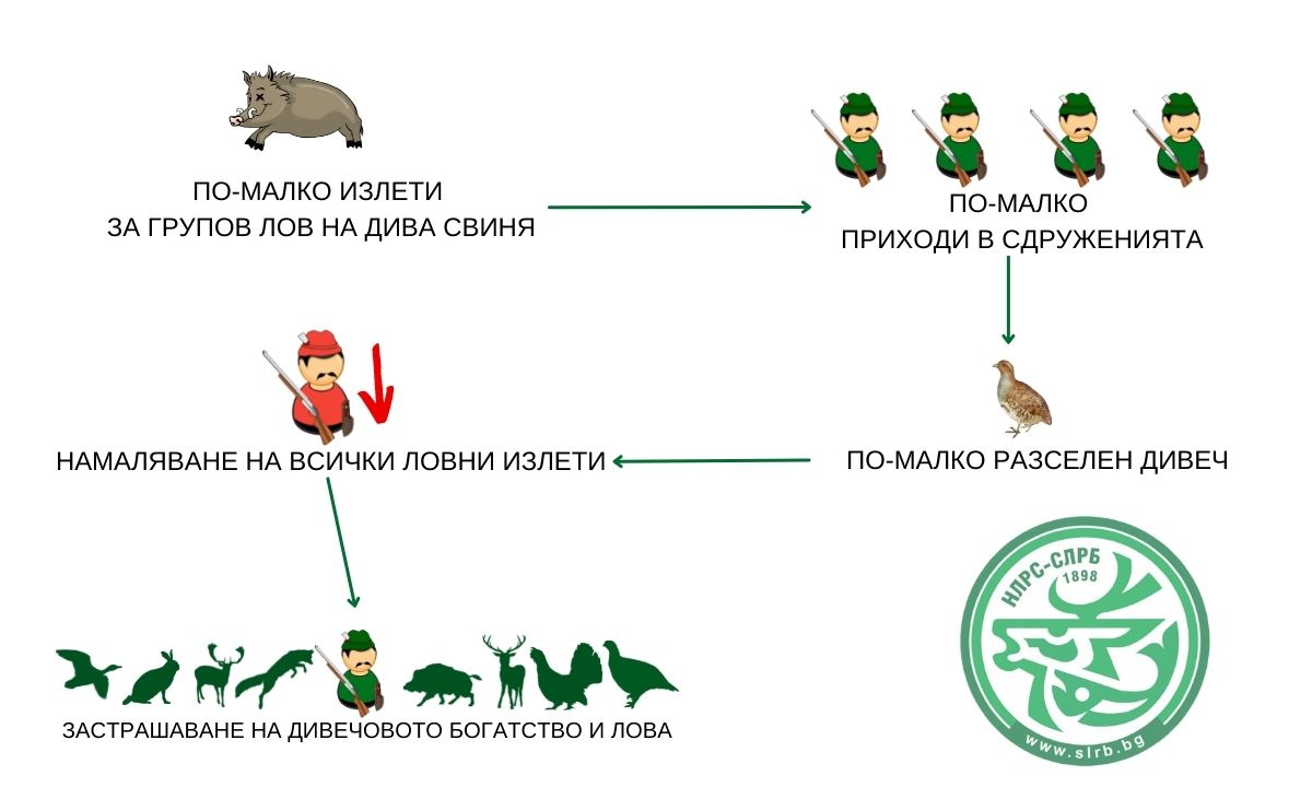 По-малко излети на дива свиня = по-малко разселен дивеч = застрашаване на дивечовото богатство и лова
