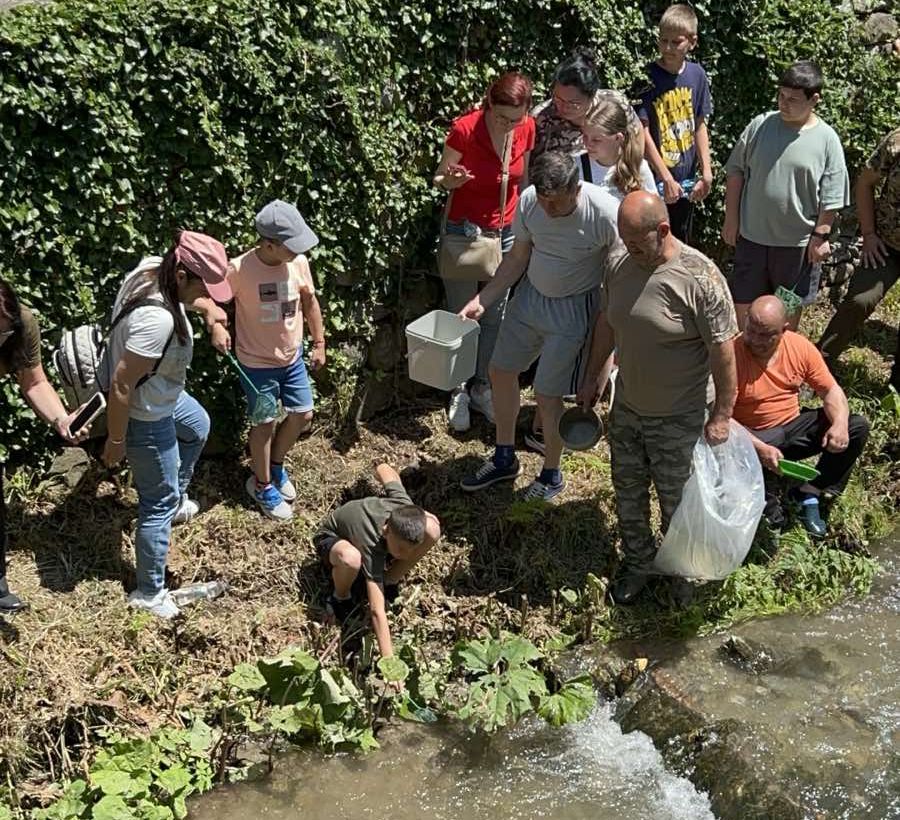 В акцията по зарибяване взе участие и част от дамското съсловие на сдружението заедно с техните ентусиазирани деца, на които също се отдаде възможност да пуснат собственоръчно рибки в прохладните води на реката.