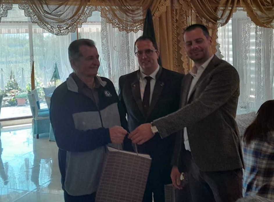 Инж. Василев награди 80-годишните близнаци Ангел и Антон Антонови. Те са членове на дружинката в земенското село Дивля и все още са активни ловци. Братята получиха по един ловен сервиз за ракия.