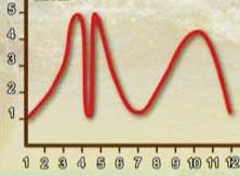 на щуката за 12-те месеца на годината. В 5-степенна скала е очертана крива, показваща по кое време от годината какви дажби храна поема хищникът. През януари активността е минимална и това е нещо логично, но още през февруари кривата тръгва стремително нагоре, за да стигне връхната си точка през март. Следва брачен период, полагане на хайвера и заслужен отдих, през който хищникът отказва всякаква храна. Тогава кривата слиза рязко надолу, но за кратко. После пак рязък скок нагоре, когато брачните ангажименти са отминали и изтощеното от ритуалите тяло
