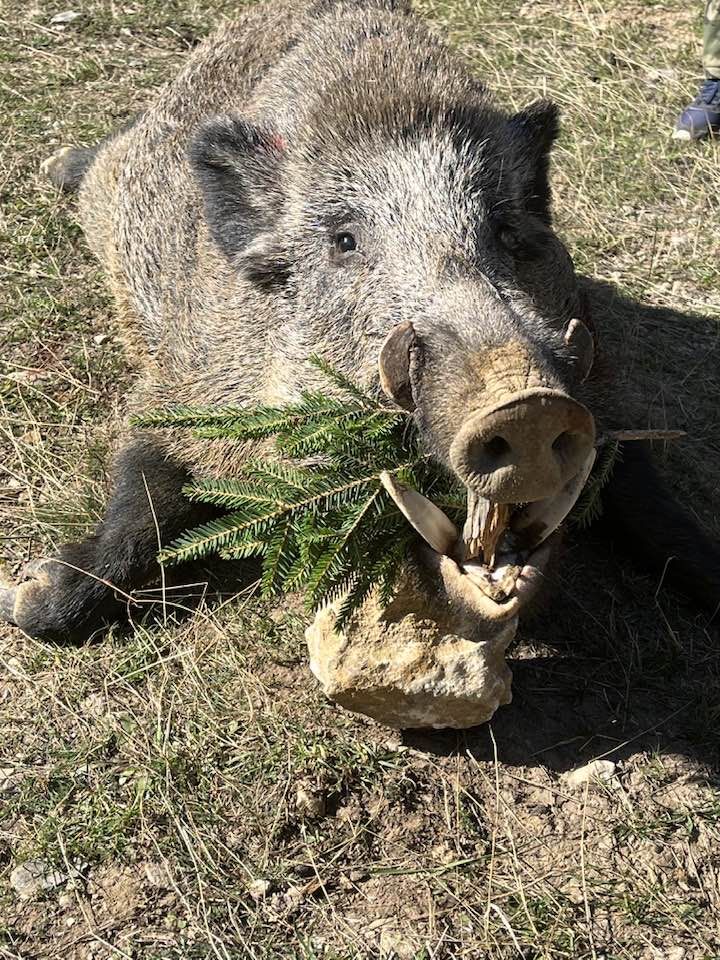 Не след дълго ловците разбират, че кучетата лаят на “диво“ и очаква появяване на диви свине. Щастливецът, на чийто пусия изскача дивото животно, е Вълко Масурски, които не се колебае и с точен изстрел поваля глигана. Той не е с внушителни размери, тежи около 130-140 килограма, но е с чудесни трофейни глиги, които се подготвят да бъдат изпратени за оценка.