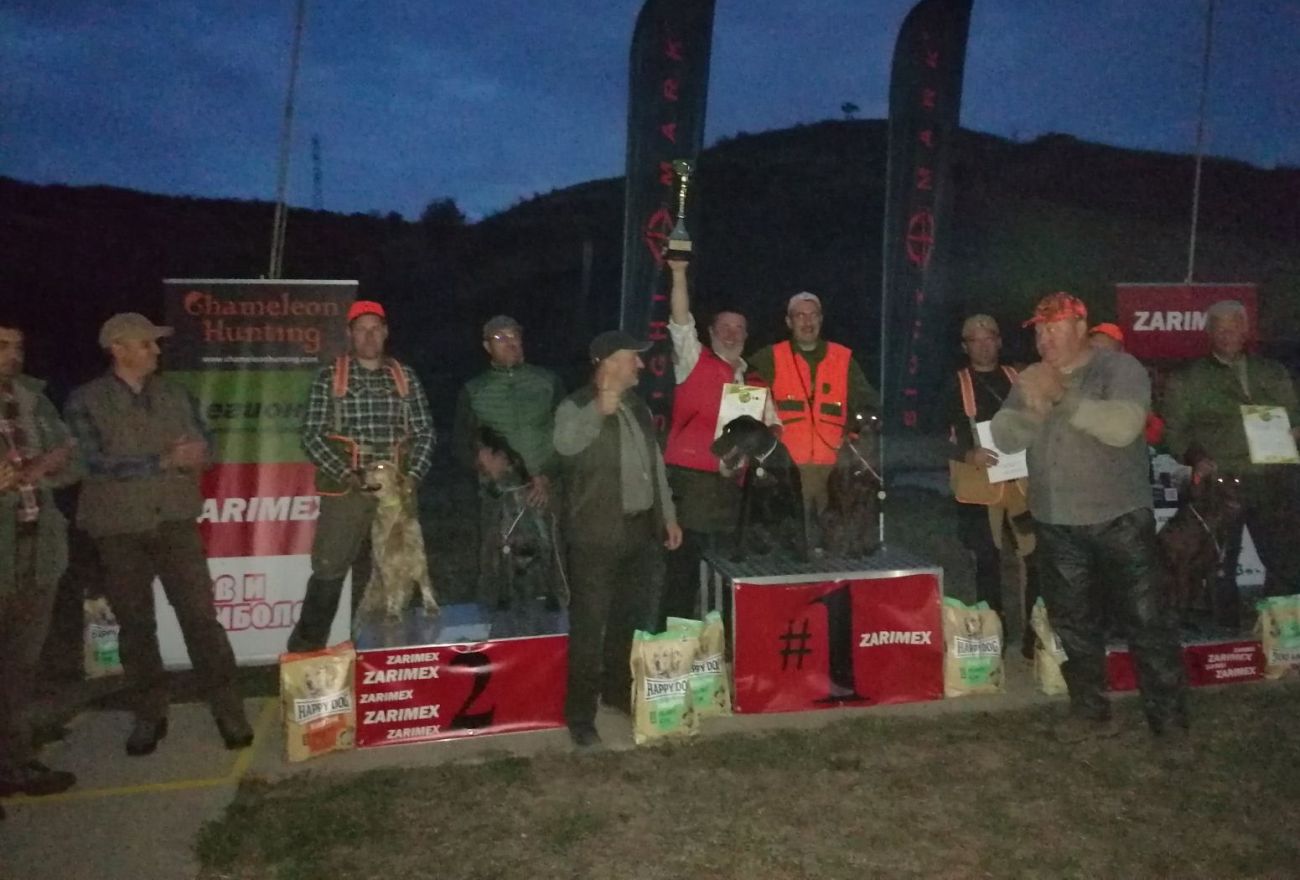 1. Павлин Казаков от ЛРС-Бургас с английски сетер Ник дел Ненковски. Награди: ловен костюм, предоставен от фирма “Легион-К”, ваучер от фирма “Хамелеон Хънтинг” на стойност 600 лв., кучешка храна от фирма HAPPY DOG , купа, грамота и абонамент за списание „Лов и риболов“,