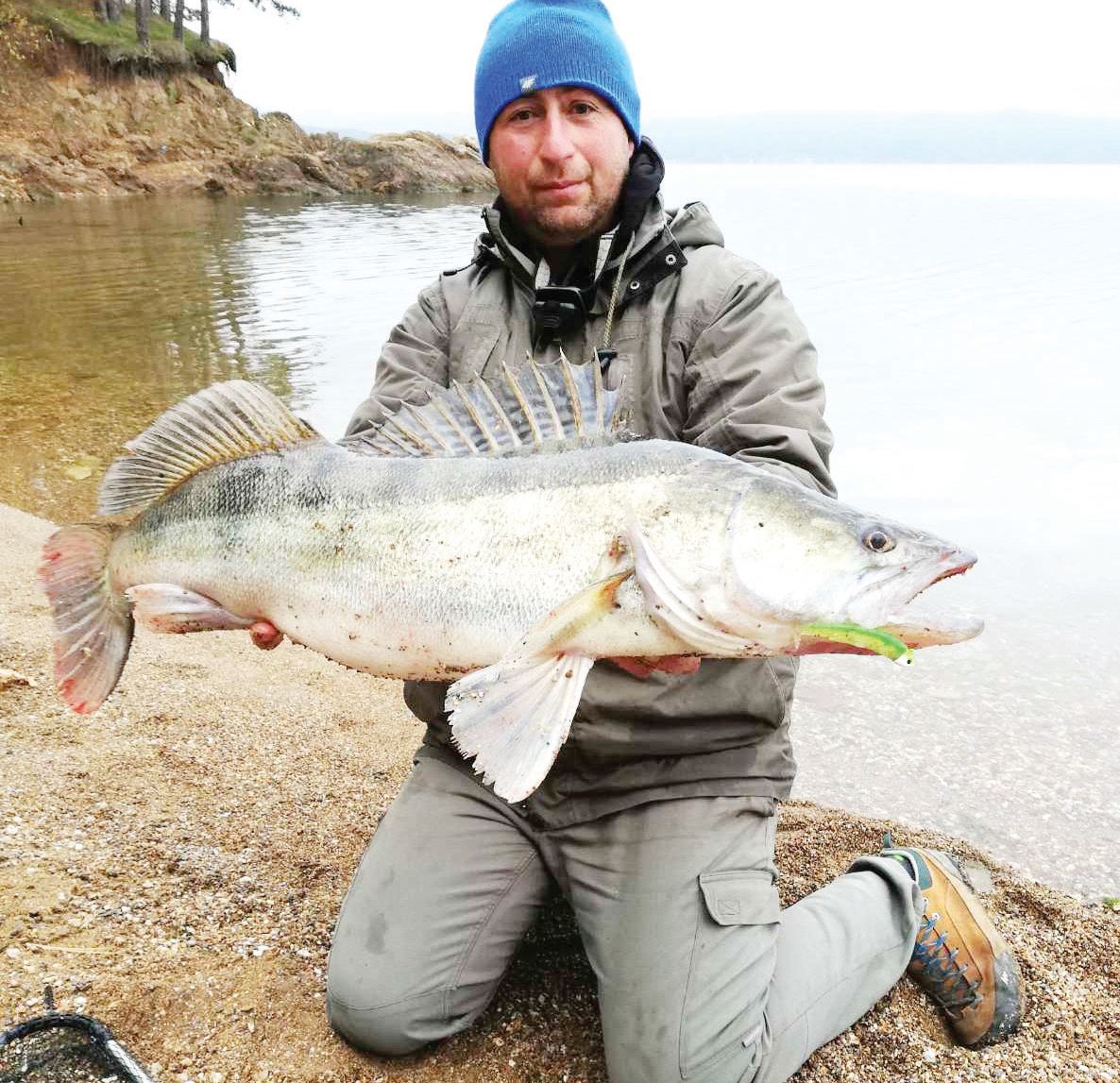 В този ден реших да сложа по-обемна силиконка, сякаш имах предчувствие, че ще се случи нещо специално. Някъде към 8 часа, на дистанция около 30 м от брега, ми удари и потегли здраво. Веднага разбрах, че е голяма риба, понеже изобщо не се подчиняваше на усилията ми да я притегля. Поне десетина минути водих позиционна битка, докато я уморя и притегля към брега. Но не носех кеп, та моят колега Атанас Тодоров ми подаде неговия и така сам си свърших работата до край. И други рибари наоколо станаха свидетели на моята невероятна слука.
